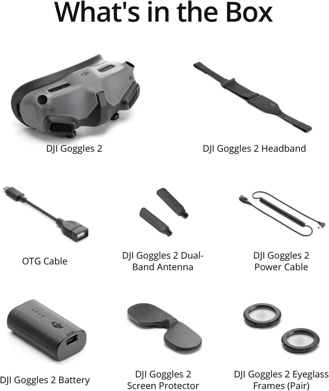 Skyward Exploration: Delve into spectacular sky-high views as if you’re flying with your drone. Compact and Travel-Friendly: DJI Goggles 2 are effortlessly transportable. The interchangeable foam padding ensures a comfortable, light-tight fit without undue pressure. Vivid Visuals: Dual Micro-OLED screens offer rich, natural colors. A dedicated video processor enhances smoothness and sharpness for outstanding visual clarity. Customizable Vision: Adjust the focus from +2.0 to -8.0 on Goggles 2, and lock your settings in place for future flights, making them suitable for users without glasses. Entertainment Beyond Flying: Wi-fi connectivity allows movie streaming directly into your Goggles. Experience synchronized audio for an immersive home cinema experience. Steady, Fast Connection: Enjoy real-time flight with minimal latency of just 30 ms. DJI Goggles 2 dynamically switch between 2.4GHz and 5.8GHz bands for a consistently smooth visual experience. Broad Compatibility: Compatible with a variety of drones including DJI Air 3, DJI Avata, DJI Mini 3 Pro, DJI Mavic 3 series, and more, enhancing their functionality.