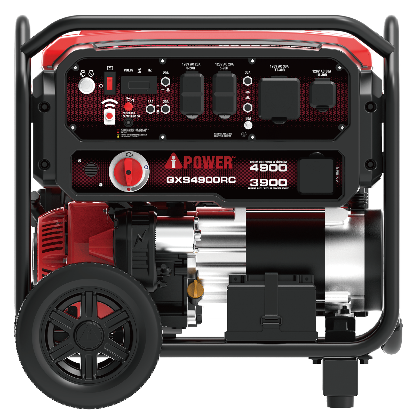 Powered by a performance series 223cc OHV engine with cast iron sleeve and low oil shutdown, the A-iPower Remote Control Generator has 4,900 starting watts and 3,900 running watts. The 6.3-gallon fuel tank offers extended run time of up to 20 hours at 25% load.