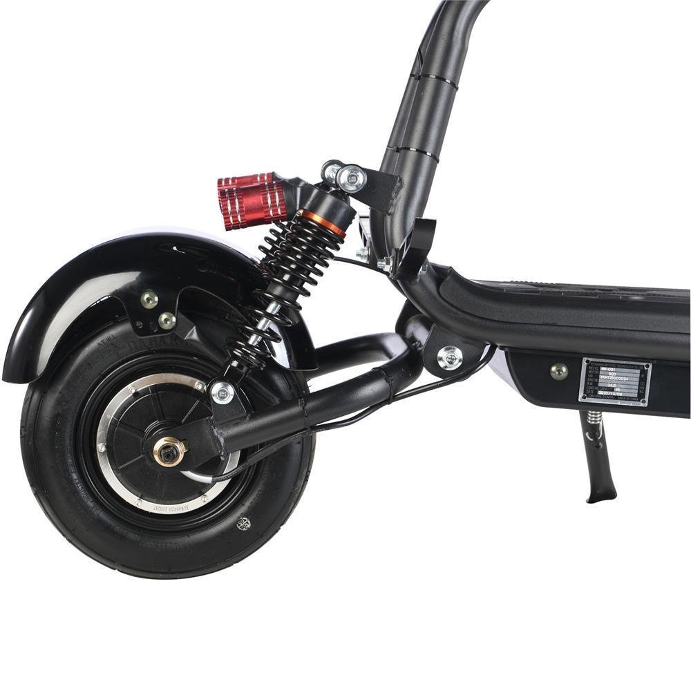 • The MotoTec Mini Fat Tire comes with a gorgeous hi-tensile steel frame and ape handlebars. This scooter comes with a rear suspension with two shock absorbers. It features a heavy-duty hi-tensile metal frame (220 lbs. capacity), metal rims, and air-filled all-terrain tires for use on the road. Enjoy using it as a daily driver or for leisure rides.