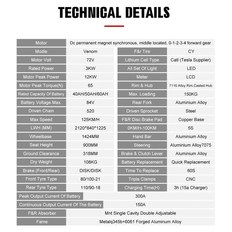 MotoTec Venom 72v 12000w Electric Dirt Bike $989.00