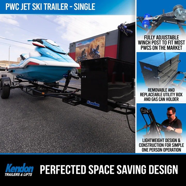 • Single PWC Trailer: Fits 1 jet ski (up to ~1,200 lbs)