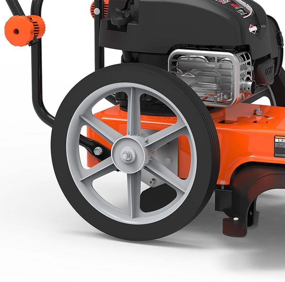 The Yard Force YF22-HWT high-wheeled trimmer is the ultimate trimmer to help cut down overgrown grass and weeds or difficult to reach areas including fence lines, around and under brushes and hedges, and uneven terrain. The 14″ rubber-wrapped wheels roll easily while the anti-vibration foam grip handle provides maximum comfort and control. Equipped with a Briggs & Stratton 163cc engine with ReadyStart system.