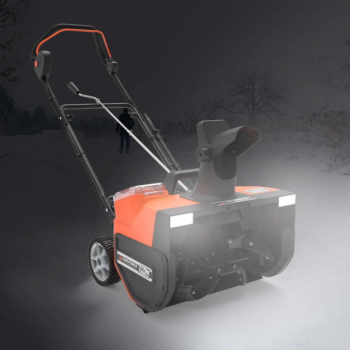 The Yard Force YF60VRX Snow Blower is packed with power to clear driveways, sidewalks, and patios. It features a 22″ clearing path and cuts through up to 10″ of snow with ease. The powerful 60v Li-ion battery produces up to 30 minutes of runtime on a full charge. The discharge chute rotates 180° for directional control and can discharge up to 20′ in distance. Powerful 3-watt LED headlight provides increased visibility for nighttime snow removal.